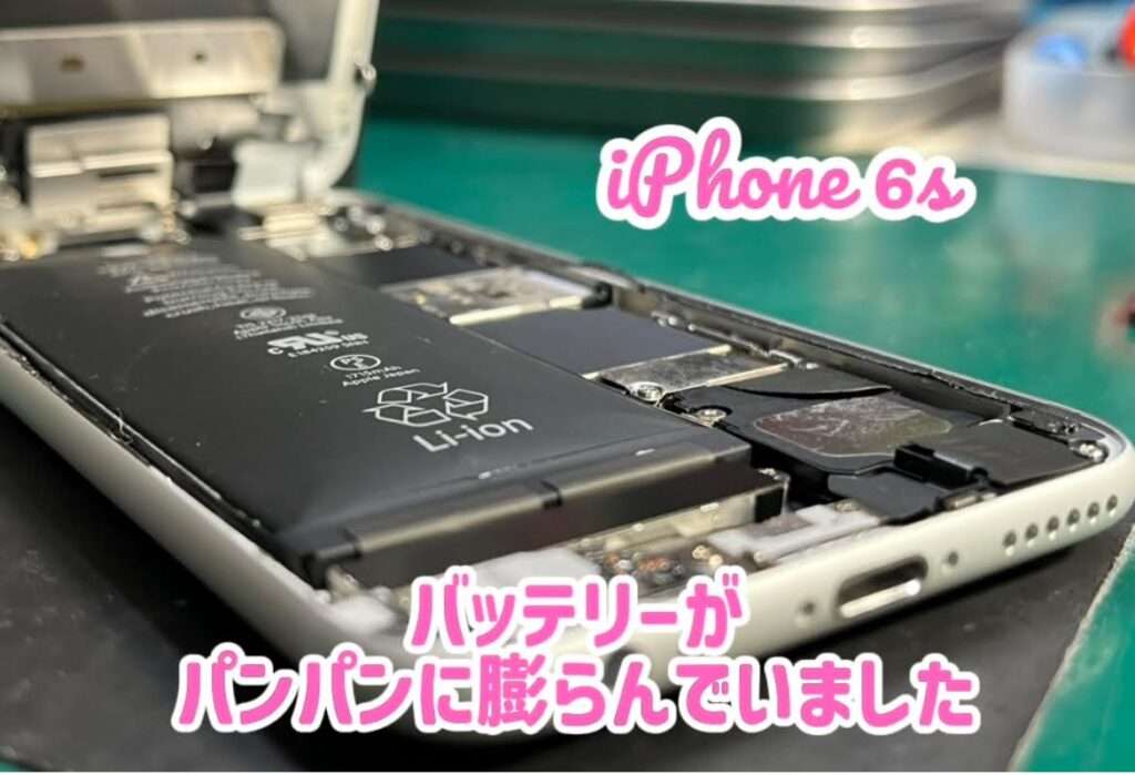 今回修理のご依頼いただいたiPhone6sはバッテリーがパンパンに膨らんで通常使用ができない状態でした。